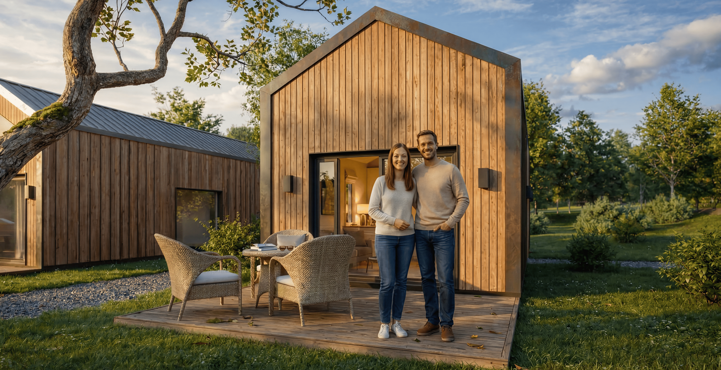 Die Tiny Häuser sind qualitativ nach allen deutschen Standards gebaut und erfüllen alle gesetzlichen Normen. Die Gewährleistung beträgt wie im Neubau üblich 5 Jahre. Als Eigentümer haben Sie dadurch Sicherheit und Planbarkeit. In unserem "All-Inklusivpaket" begleiten wir Sie von der ersten Information bis zur schlüsselfertigen Übergabe und stehen auch bei Fragen danach an Ihrer Seite.